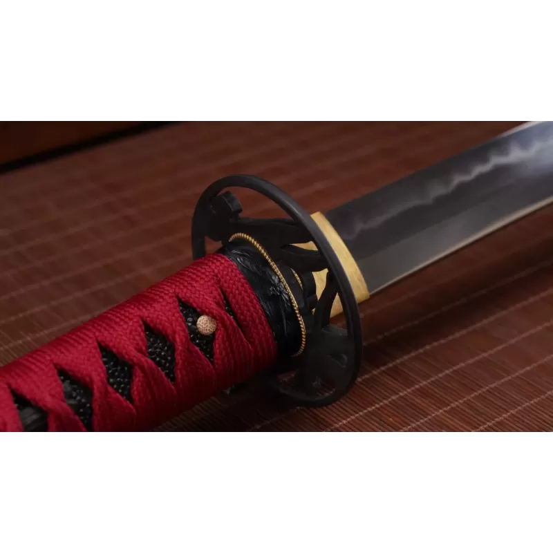 Der klassische Shinogi-Zukuri Klingentyp ohne Bo-hi verleiht der Klinge zusätzliches Gewicht und Schneidkraft. Mit einer Nagasa von 74,84 cm und einer ergonomischen Tsuka von 28 cm, straff gewickelt mit rotem Baumwoll-Ito, bietet dieses Schwert hervorragende Balance und Kontrolle. Schwarze echte Same, zwei Mekugi und eine robuste Full-Tang-Konstruktion sorgen für maximale Sicherheit und Zuverlässigkeit.